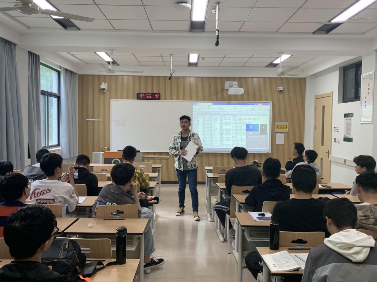 甄钧上台向大家介绍了自己考研时的心态、学习方法、时间分配等有助于成功的秘诀。最后,甄钧学长还对考研考公后的发展道路进行了经验分享。学长强调:一定要重视对实习的第一所公司的选择,踏入社会的第一份工作往往薪资不高,但是它却是让你与社会接轨、了解行业实际情况、建立责任心的一个踏板,对同学自身素质的提升与能力的培养有重要意义。